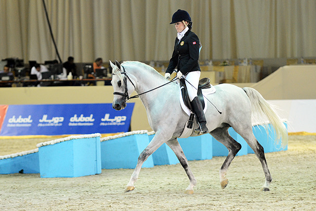 Det kan virke som rytterklassene bare er en bi-ting under Dubai International Arabian Horse Championship, hvor de aller fleste hestene blir vist for hånd. Men selv om det er relativt tidlig på morgenkvisten, er det store summer som deles ut til de beste hestene.