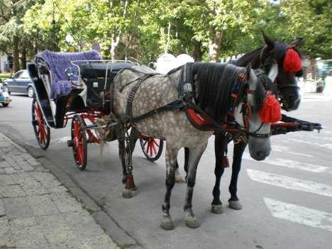 Ridesenteret i Albena er ikke det eneste stedet man støter på hester, som et hvert sydensted med respekt for seg selv er det også ett visst antall hestedrosjer.