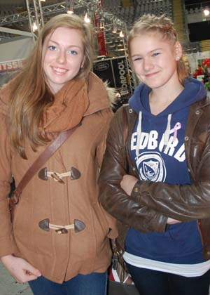 Victoria Berg (17) og Mina Opdal (14) (bildet til høyre) har også vært med på Oslo Horse Show flere år før. I år følger de spesielt med på deres venninne Andrea Øygrendal som er med å ri sprang.
