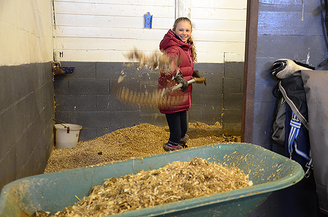 Marita er imponert over datterens innsats i stallen.