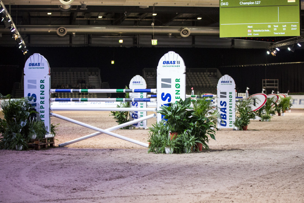 Salen er fylt opp av spente hestemennesker som er klare for å se hester og ryttere hoppe til nye høyder. Banemannskapet er godt i gang med å bygge opp fredagens Six Bar høydehopping, bestående av seks hindre etter hverandre gjennom banen.