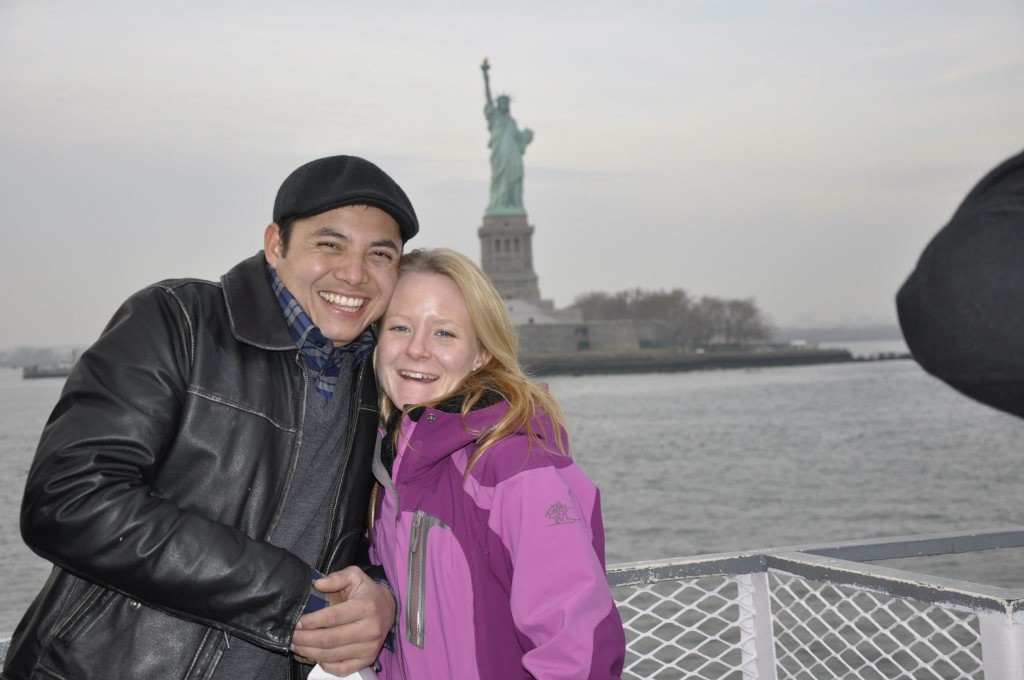 Edwin og Marie fant hverandre i USA, her ser vi dem foran frihetsgudinnen i New York, og det var Marie som fikk Edwin til Norge. TGN-foto/LB