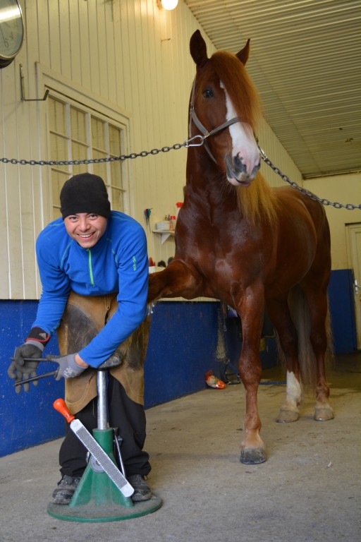 Edwin har blitt en ressurs på Jæren når det kommer til skoning av hest. Både trav- og ridehester står på hans kundeliste. Her får BB Terje T nye framsko.
