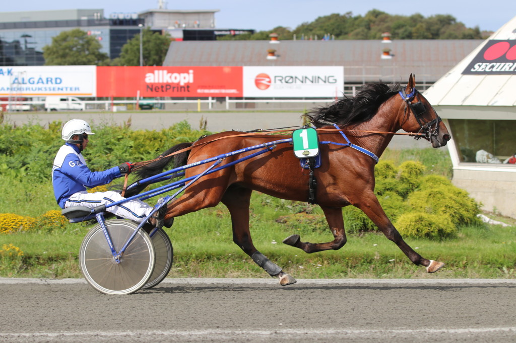 Dette er ikke Geir Gudmestad, men Edwin i «GG» sin drakt i en lokalkjøring i høst. – Jeg prøvde meg på kjørelisens når jeg kom til Norge, men fullførte det ikke på grunn av språket. Nå har jeg det så travelt og trives godt med å trene og sko hest.