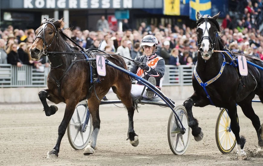 Kusk Tor Wollebæk og Lannem Silje da de i 2015 vant Elitkampen på Solvalla. Hoppa gikk sitt siste løp i 2018. Foto: Bildbyrån/Johanna Lundberg