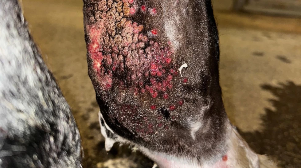 Hudskader grunnet parapoxvirus. Foto: Privat
